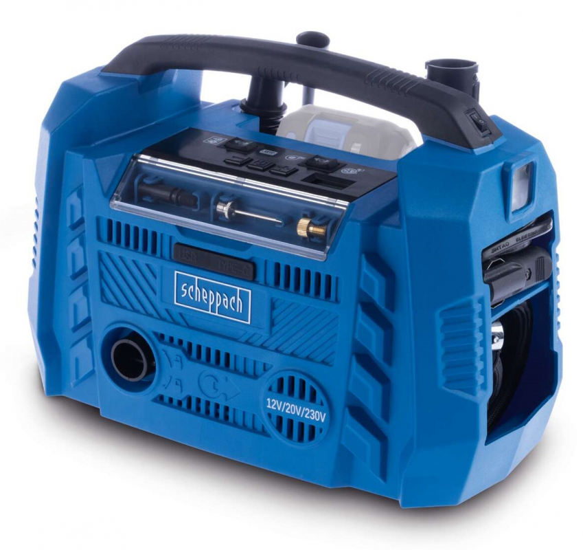 Aku ja laadija müüakse eraldi. Scheppachi IXES 20 V akusüsteemi osana ühildub Airforce 6 kõigi sarja akude ja laadijatega.
